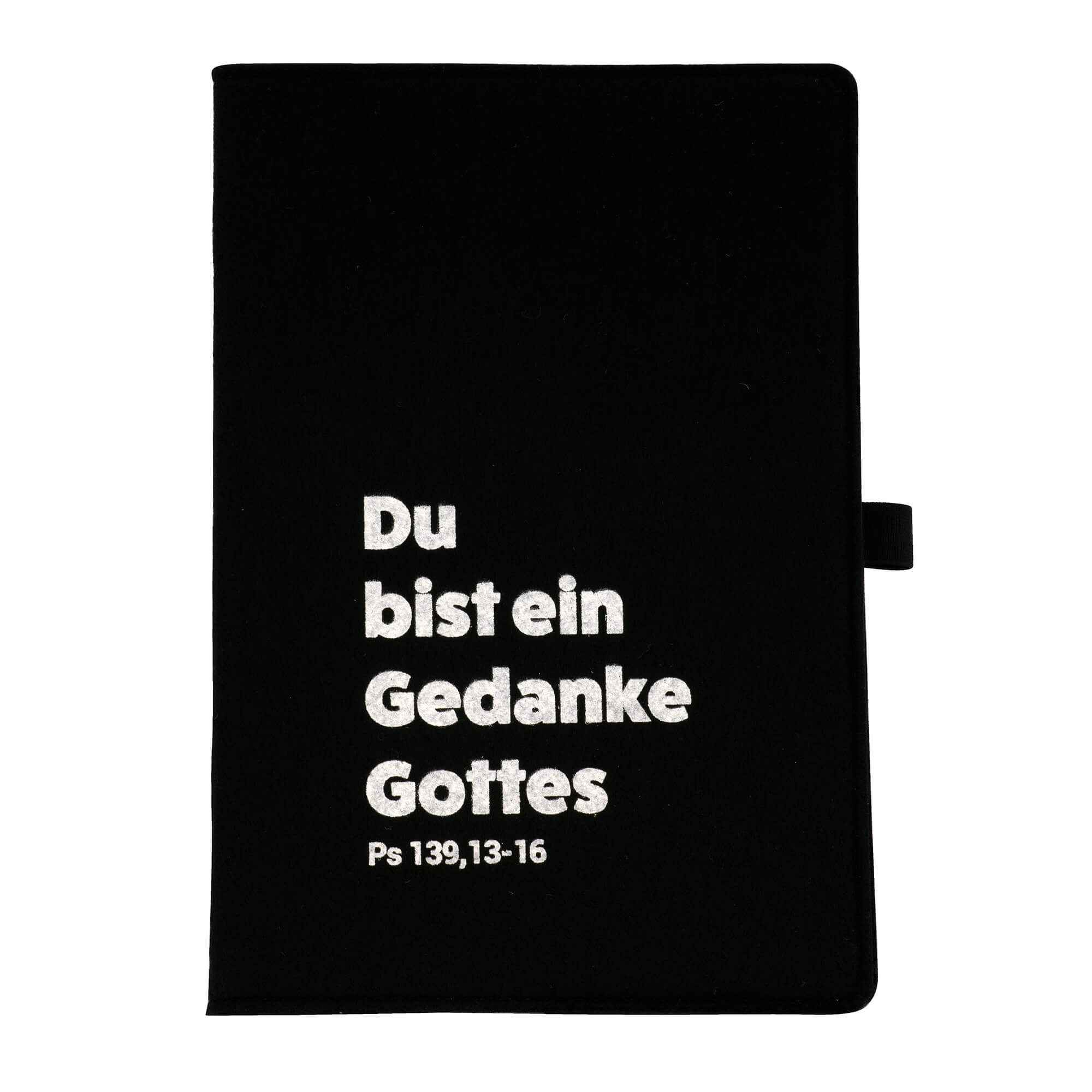 Bedruckt ist das Notizbuch mit dem beliebten Vers „Du bist ein Gedanke Gottes Ps 139,13-16“.