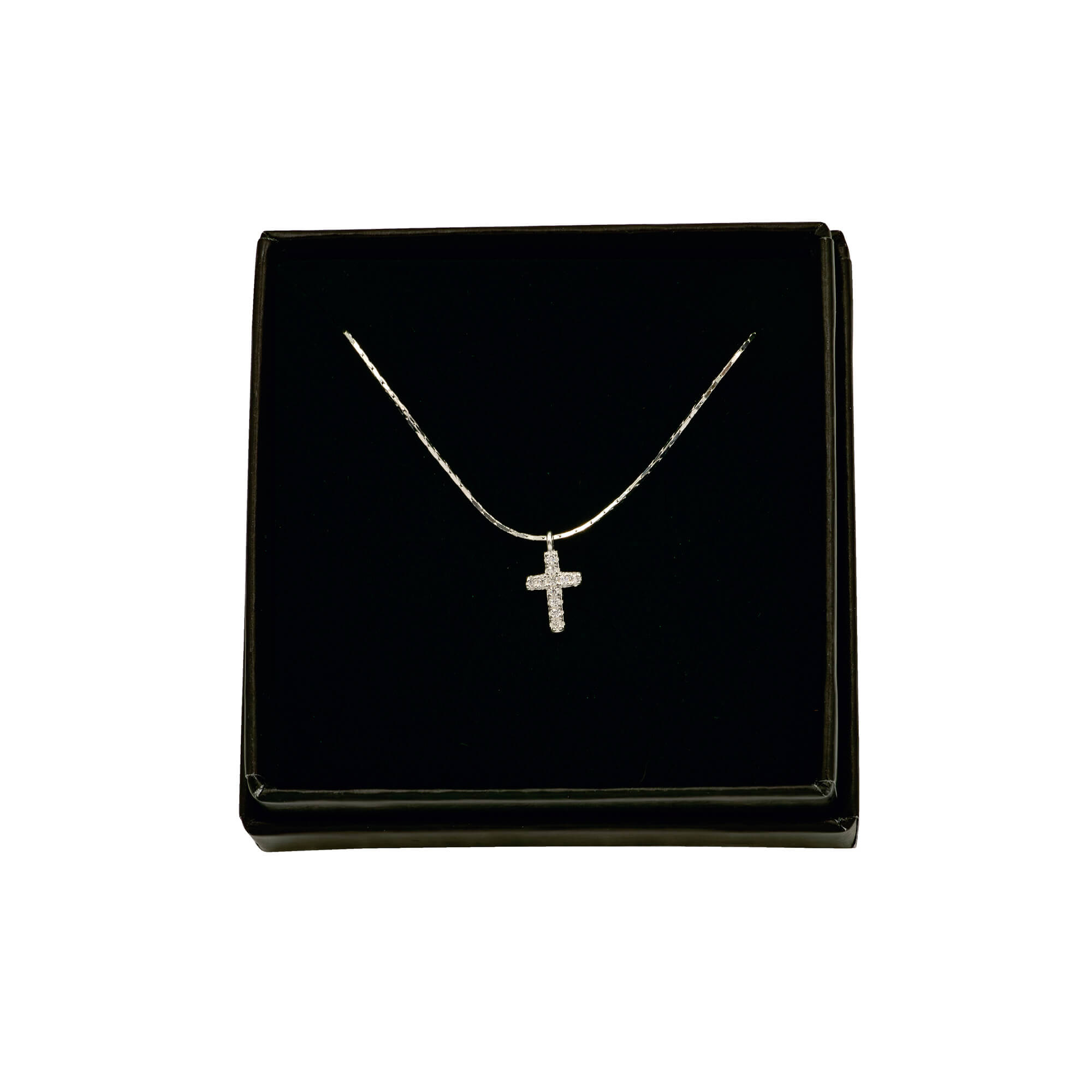 Elegante Halskette aus 925er Silber mit filigranem Kreuzanhänger, besetzt mit funkelnden Zirkonia-Steinen.