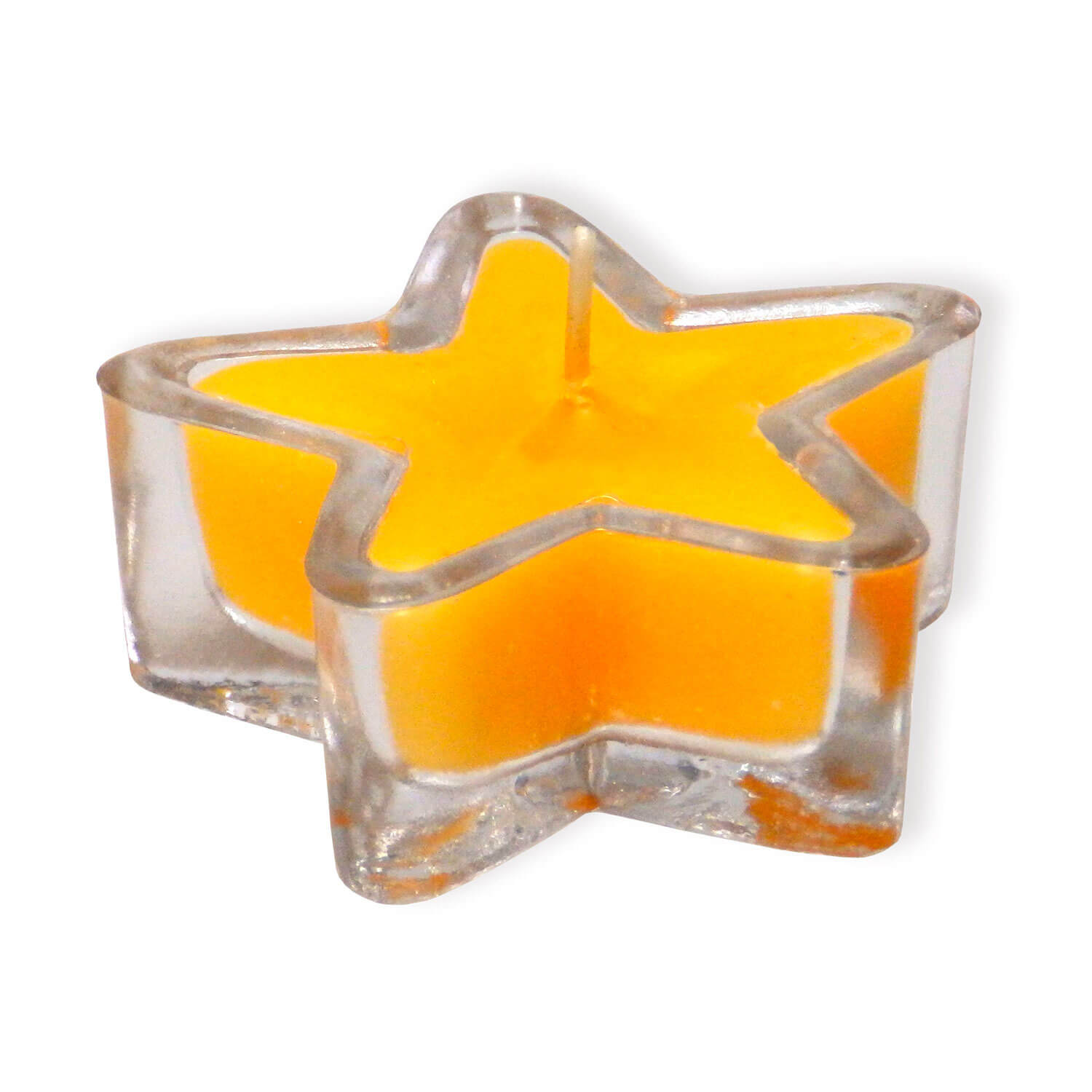 Kleines Kerzenglas in Sternform, ca. 5 cm, einzeln in Geschenkfolie verpackt