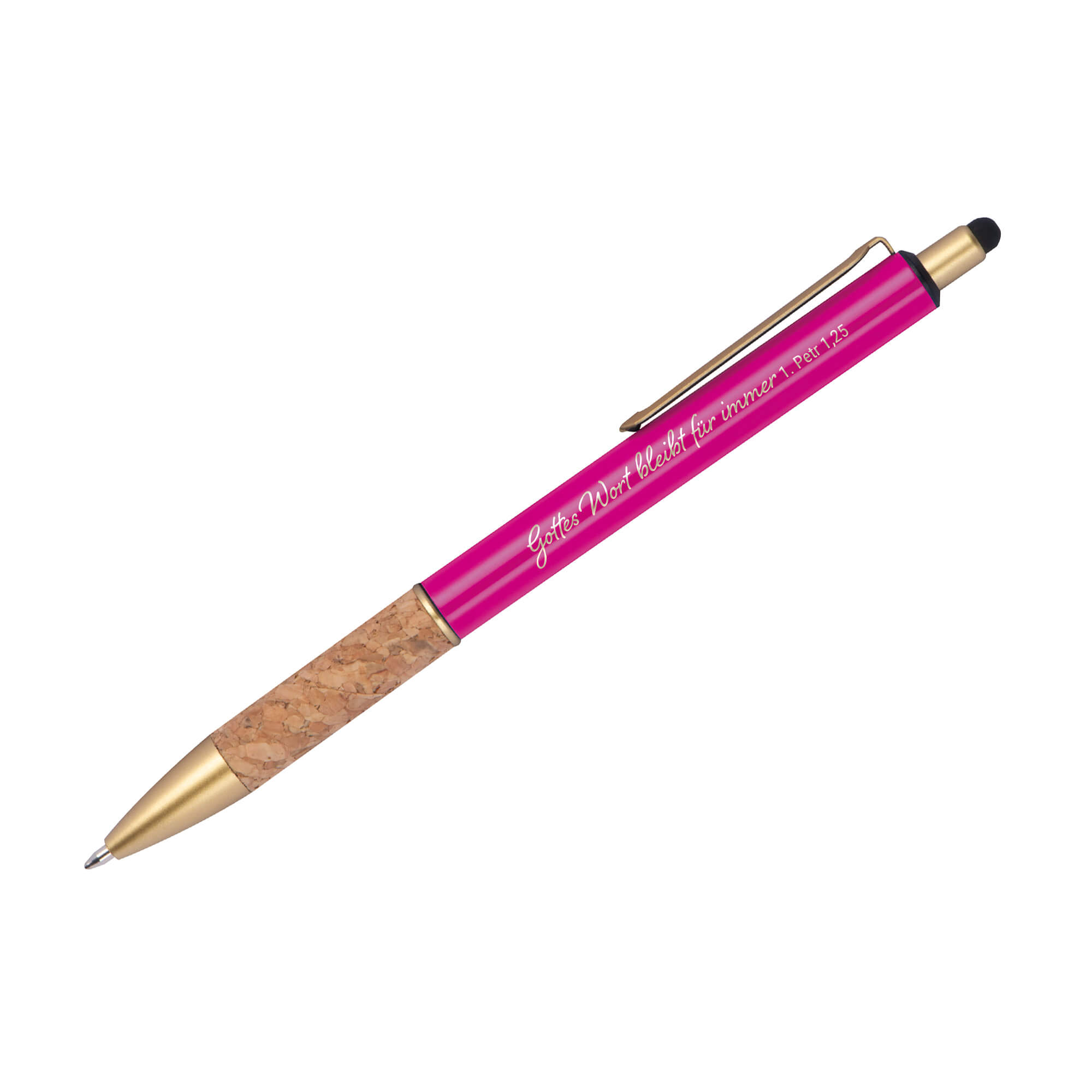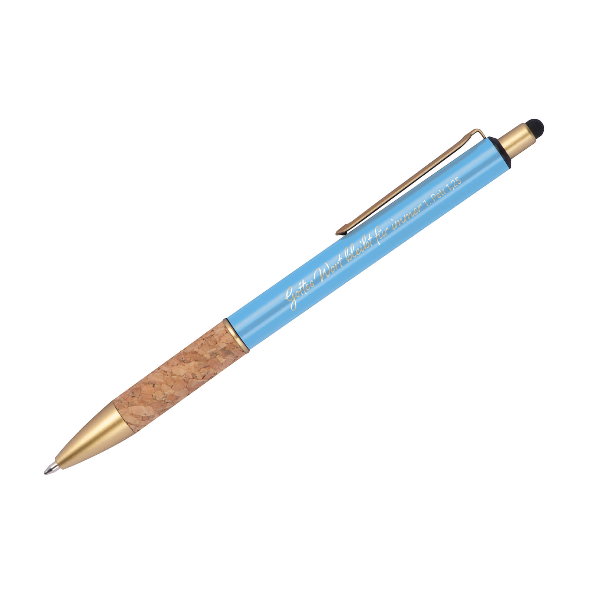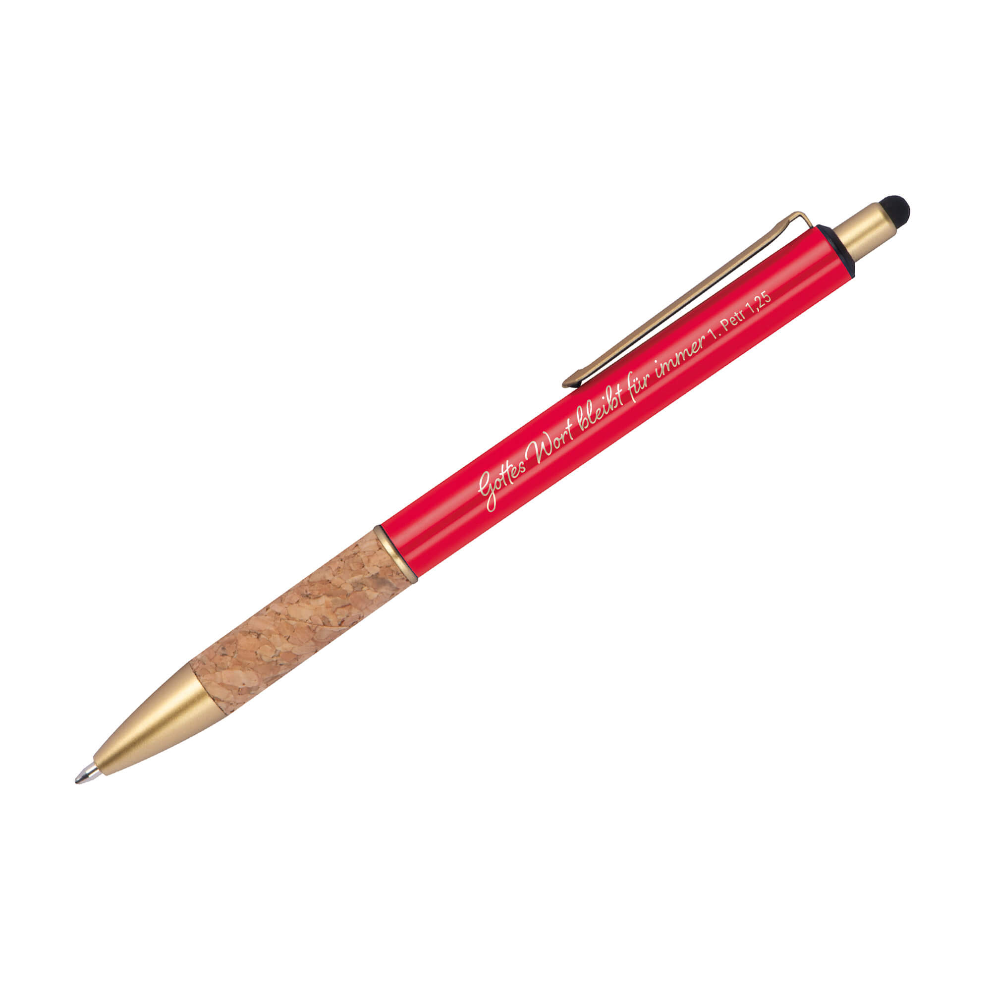 „Gottes Wort bleibt für immer 1. Petr 1,25“, diese stimmige Aussage ist auf dem Kugelschreiber „Petrus“ lasergraviert.