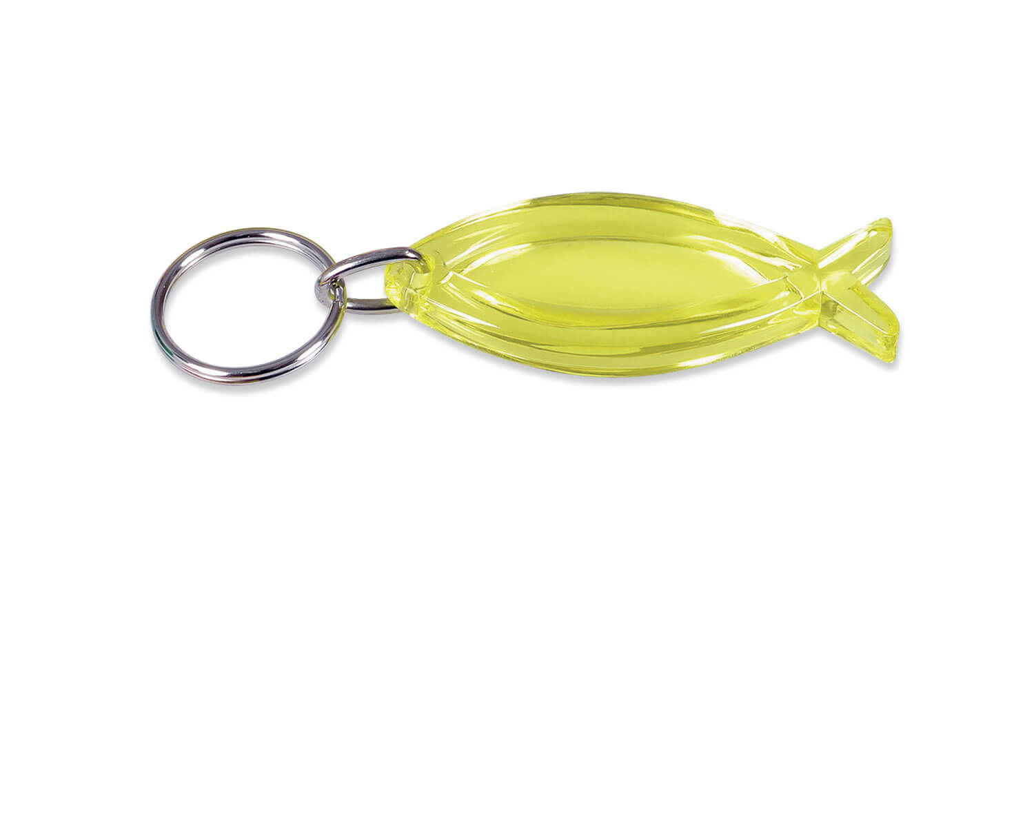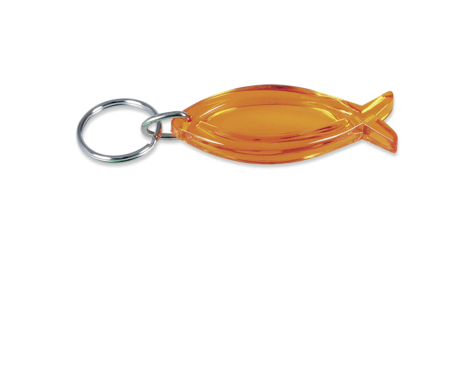 Schlüsselanhänger in Fisch Form aus transparentem Acryl, ca. 6,2 cm.