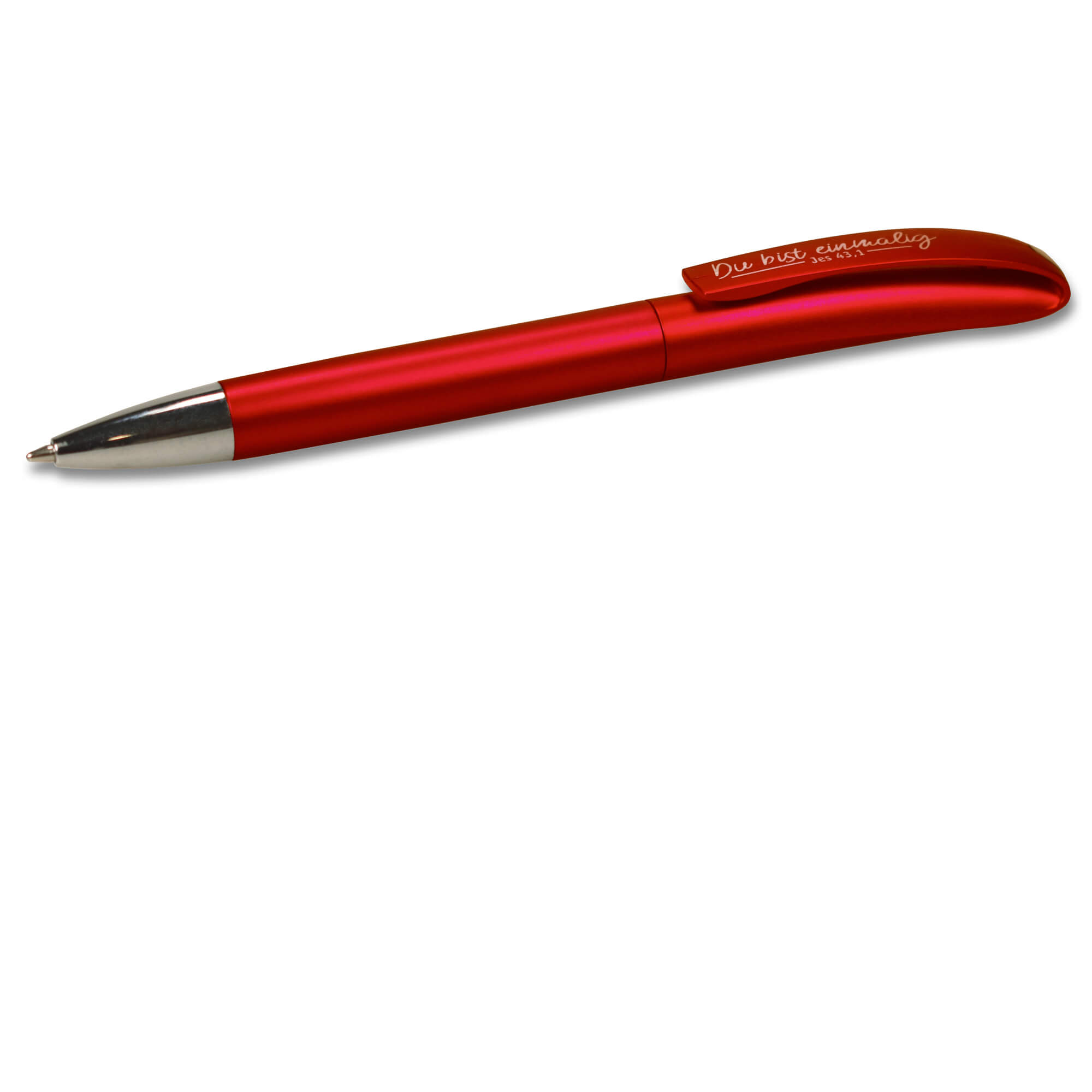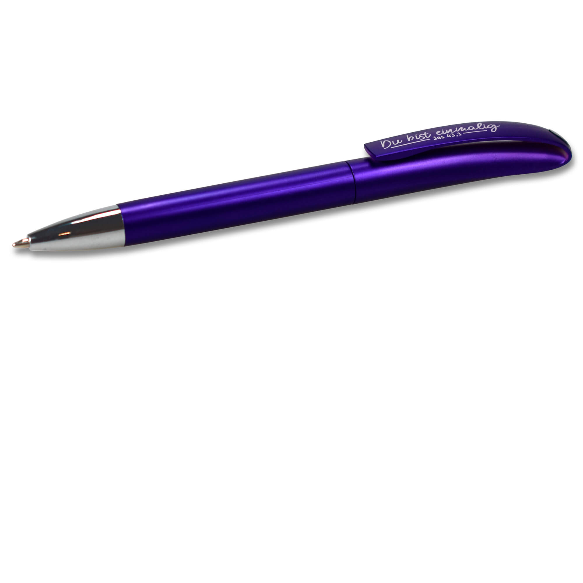Drehkugelschreiber aus Kunststoff in modernen Metallic-Farben, Aufdruck "Du bist einmalig Jes 43,1", Minenfarbe: blau